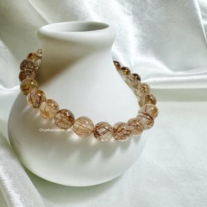 The thread-like/hair-like inclusion of Copper Rutilated Quartz is the oxidised titanium, which gives out the reddish bronze colour. It contains strong ancient healing energy to aid your everyday life.